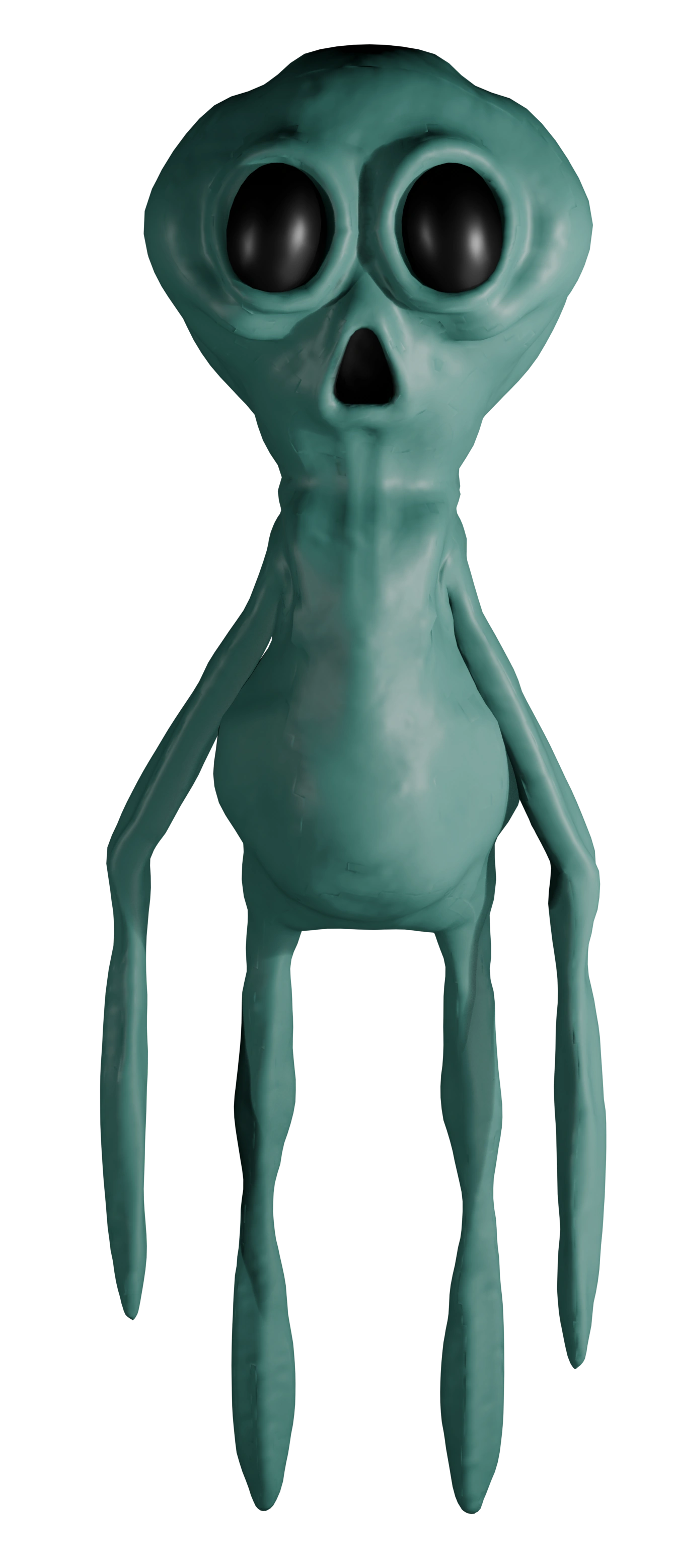 The Givanium Elder looks similar to the Givanium Citizens and, to an extent, the Stalker. He has long, deflated lanky limbs, and his chest and stomach are bunched up with extra skin. His head is a rounder oval shape with a rounded triangular mouth slightly popping out from his head. His eye sockets are large vertical ovals with bunched up skin around the edges, and have black sclera in them. He also wears a golden crown with ruby jewels embedded around it.